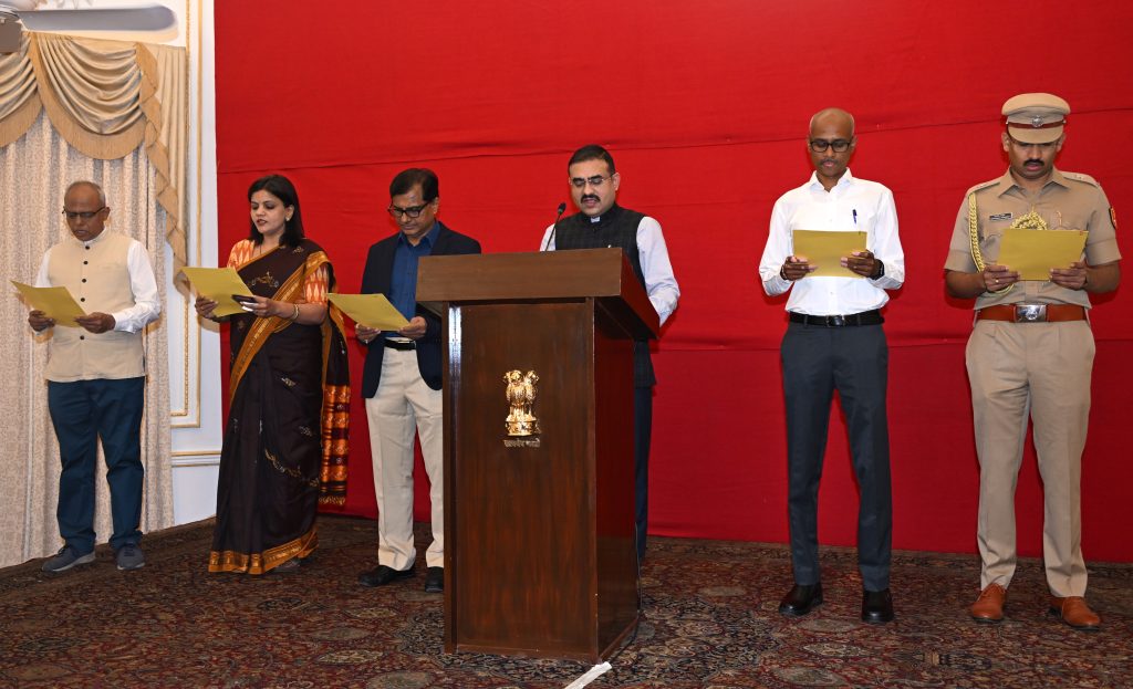 26.11.2025 : Officers and staff of Maharashtra Raj Bhavan read out the preamble of the Constitution of India on the occasion of the Constitution Day at Raj Bhavan, Mumbai. Secretary to the Governor Dr. Prashant Narnaware read out the preamble of the Constitution of India along with the staff and officers of Raj Bhavan. Officers and staff of Raj Bhavan and Police personnel posted in Raj Bhavan reiterated the resolve of the nation to constitute India into a Sovereign, Socialist, Secular and Democratic Republic on the occasion. Deputy Secretary to the Governor S. Ramamoorthy, Comptroller of the Governor’s Households Dr. Nishikant Deshpande, ADC to the Governor Abhaysinha Deshmukh and staff and officers of Raj Bhavan were present.