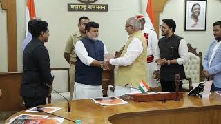 17.02.2025: Maharashtra Governor C P Radhakrishnan accompanied by Minister of Industries and Marathi language Uday Samant released the ‘Sammelan Geet’ of the 98th edition of the Akhil Bhartiya Marathi Sahitya Sammelan at Raj Bhavan Mumbai. The All India Marathi Literary Meet is being held in New Delhi from 21st to 23rd February. Lyricist of the Sammelan Geet ‘Aamhi Asu Abhijat’ Dr. Amol Deolkear, Music Composer Anandi Vikas, Singer Mangesh Borgaonkar, Coordinator Vikas Sontate and Members of organizing committee were present.