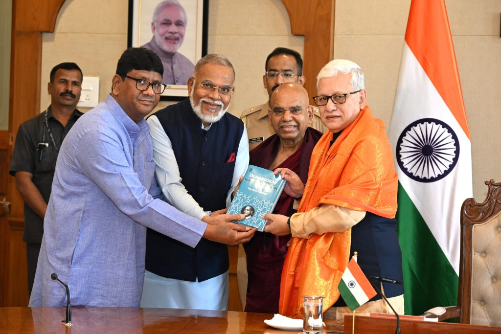 Zoom 09.04.2026: ज्येष्ठ अर्थतज्ज्ञ, लेखक व नियोजन आयोगाचे माजी सदस्य डॉ नरेंद्र जाधव यांच्या नेतृत्वाखाली डॉ. बाबासाहेब आंबेडकर जयंती उत्सव व महापरिनिर्वाण दिन समन्वय समितीच्या सदस्यांनी आज राज्यपाल जिष्णु देव वर्मा यांची लोकभवन, मुंबई येथे सदिच्छा भेट घेतली. यावेळी त्यांनी राज्यपालांना डॉ. बाबासाहेब आंबेडकर यांच्या १३५व्या जयंतीनिमित्त चैत्यभूमी येथे आयोजित कार्यक्रमाचे निमंत्रण दिले. यावेळी भदंत डॉ राहुल बोधी महाथेरो, समितीचे महासचिव नागसेन कांबळे व इतर सदस्य उपस्थित होते.