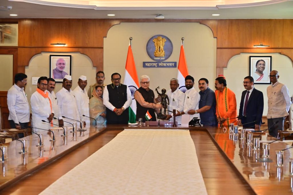 13.03.2026: राज्यातील सर्वपक्षीय आदिवासी आमदारांच्या एका शिष्टमंडळाने राज्याचे नवनियुक्त राज्यपाल जिष्णु देव वर्मा यांची लोक भवन मुंबई येथे सदिच्छा भेट घेतली व राज्यातील अनुसूचित जमातींच्या प्रलंबित प्रश्नांवर चर्चा केली. शिष्टमंडळाच्या सदस्यांनी यावेळी राज्यपालांचा सत्कार केला तसेच त्यांना भगवान बिरसा मुंडा यांची प्रतिमा भेट दिली. यावेळी विधान मंडळाचे सदस्य भीमराव केराम, हरिश्चंद्र भोये, मंजुळा गावित, हिरामण खोस्कर, डॉ किरण लहामटे, अमशा पडवी, राजू तोडसाम, शिरीष कुमार नाईक व विलास तरे उपस्थित होते.