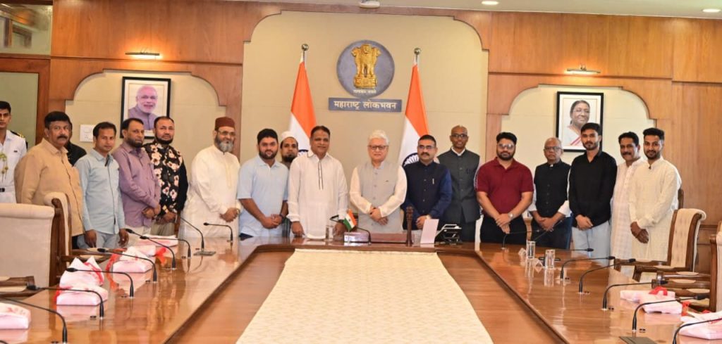 Zoom 20.03.2026: महाराष्ट्र लोकभवन येथे कार्यरत कर्मचारी तसेच परिसरातील मुस्लिम बांधवांनी रमजान ईद निमित्त राज्यपाल जिष्णु देव वर्मा यांची लोकभवन मुंबई येथे सदिच्छा भेट घेतली. "सर्वांना भेटून खूप आनंद झाला. रमजान ईद निमित्त सर्वांना अग्रीम 'ईद मुबारक' देतो. सर्वांनी आनंदात राहा, कुटुंबाची काळजी घ्या व आरोग्याची काळजी घ्या" असे सांगून राज्यपालांनी प्रत्येकाला मिठाई वाटप केले.