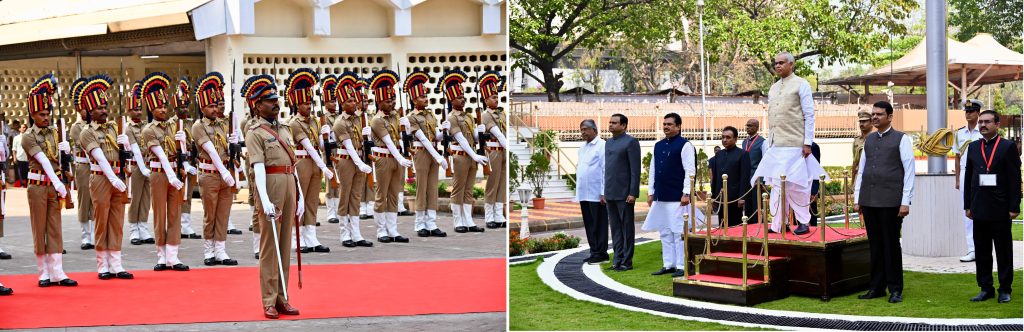 23.02.2026: The Governor of Maharashtra and Gujarat Acharya Devvrat addressed the Budget Session of the Maharashtra State Legislature on the first day of the budget session at Vidhan Bhavan in Mumbai. Chairman of the State Legislative Council Prof. Ram Shinde, Speaker of the Legislative Assembly Rahul Narwekar, Chief Minister Devendra Fadnavis and Minister of Parliamentary affairs Chandrakant Patil welcomed the Governor. The Governor was presented with a ceremonial Guard of Honour by the State Police on arrival at Vidhan Bhavan.